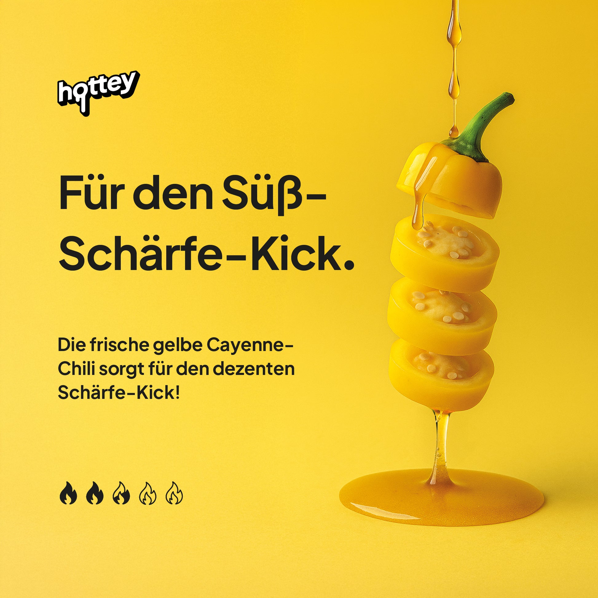 Hottey hat eine milde, sanfte Schärfe. Du wirst dir also nicht den Mund verbrennen. Versprochen.