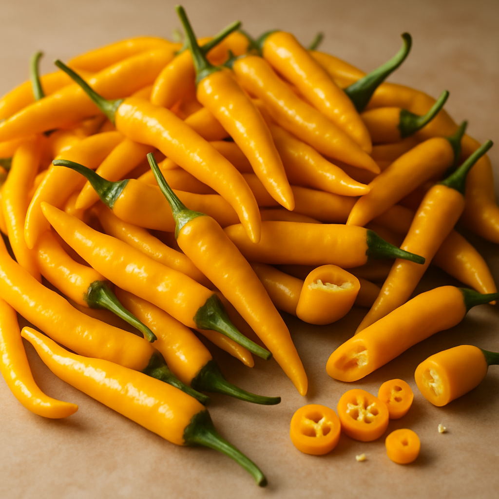 Die gelbe Cayenne Chili bringt fruchtige Schärfe mit sonniger Frische – nicht einfach nur scharf, sondern aromatisch, lebendig und perfekt ausbalanciert.